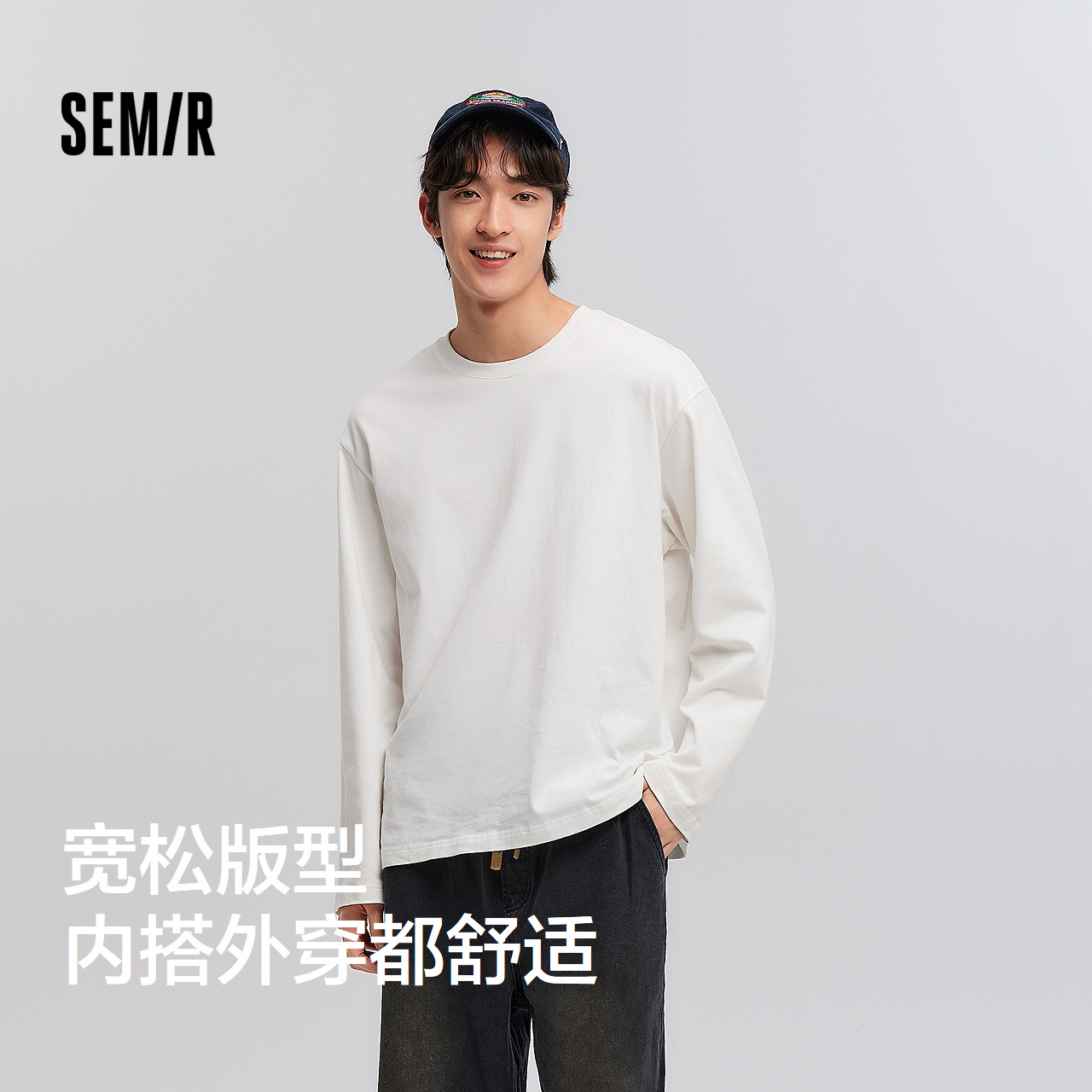 2025春新款 T恤男纯棉打底衫 森马长袖 百搭纯色内搭情侣 商场同款