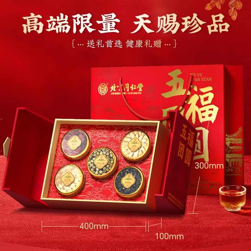 怡福寿同仁堂石斛礼盒五福礼盒西洋参黄芪黑枸杞鹿茸五拼礼礼物