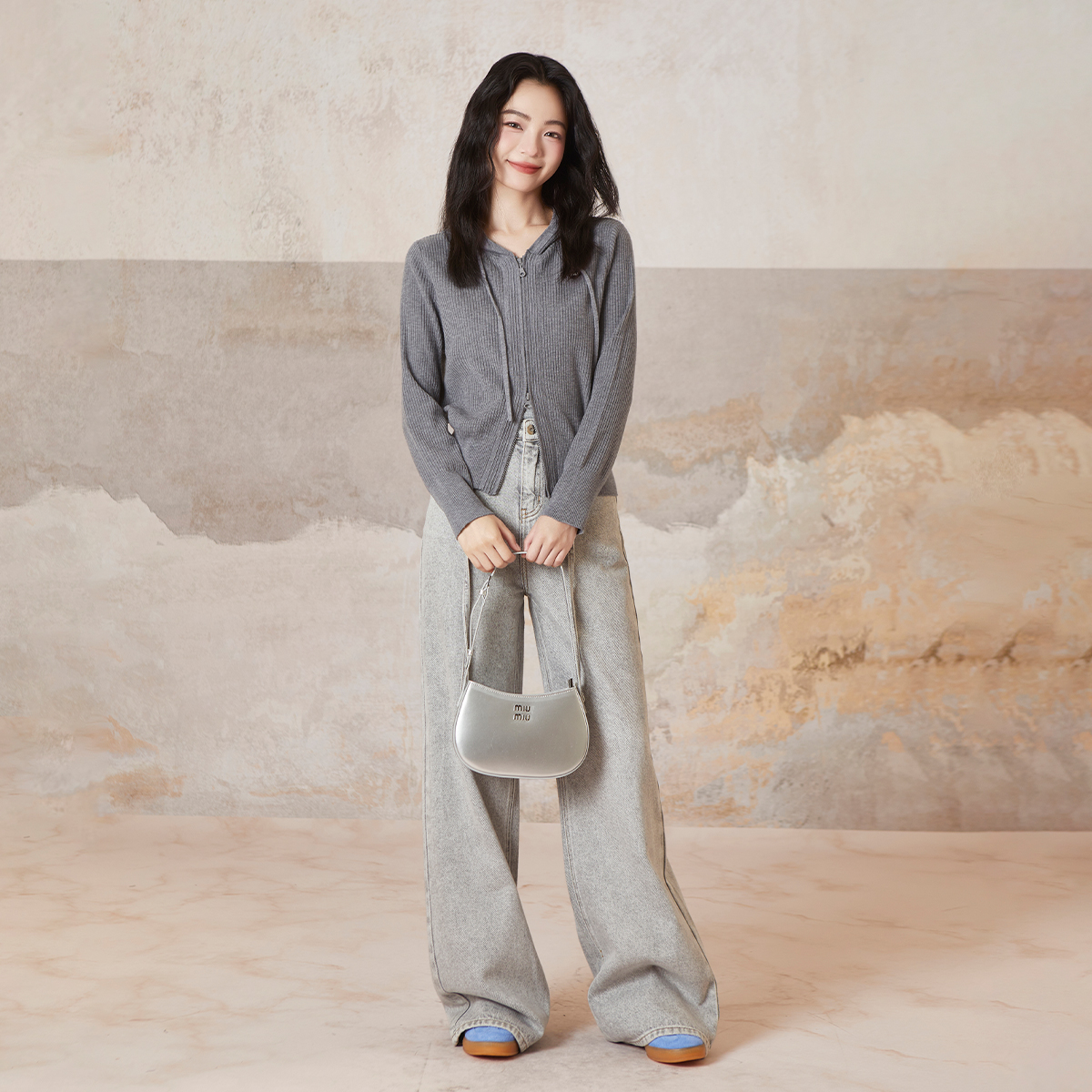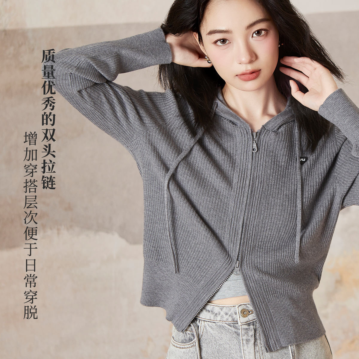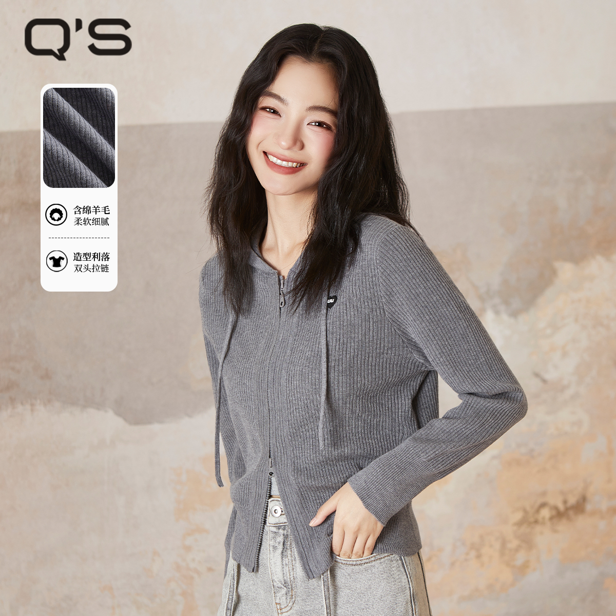 女含羊毛闪钻设计长袖 灰色针织衫 上衣毛衣 新款 DPLAY2025年秋季