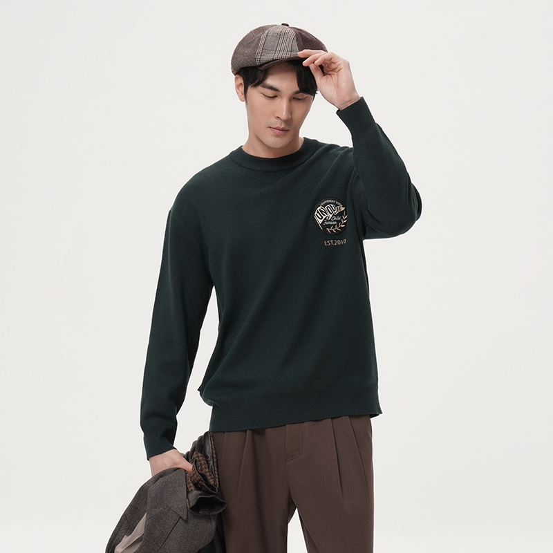 男士 毛线针织衫 内搭打底线衣A 薄款 班尼路S&K灰色毛衣男圆领秋季