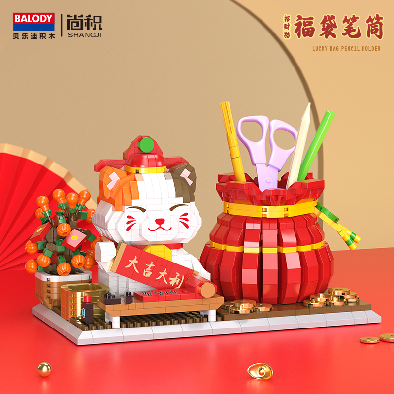 贝乐迪国风积木拼装 春节礼物送女生 招财猫笔筒高颜值摆件2025新款