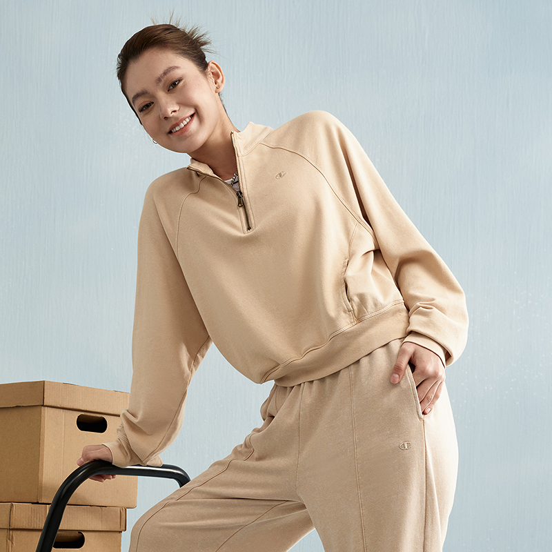 立领上衣 水洗做旧半拉链插肩袖 Champion冠军卫衣女2025秋季 新款