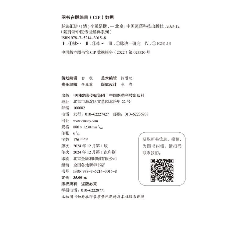 清 系列 李延昰 中国医药科技出版 9787521430158 脉诀汇辨 社 随身听中医传世经典