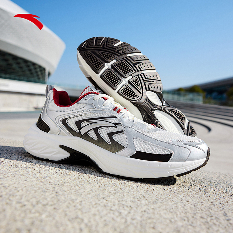 银色复古跑步鞋 潮流革网拼接运动鞋 男鞋 新款 2025秋季 安踏AT959