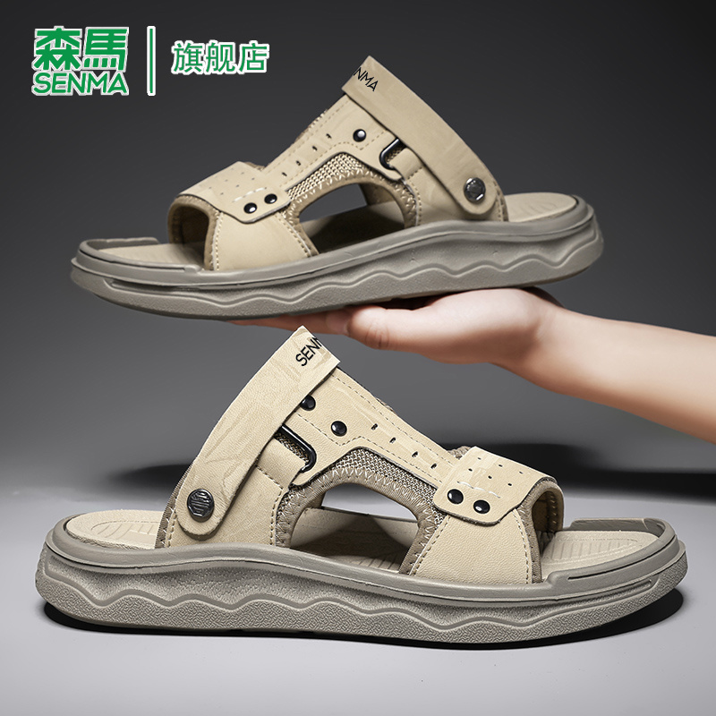 外穿防滑防臭两用软底时尚 男夏季 百搭运动涉水一字拖 凉鞋 森马新款