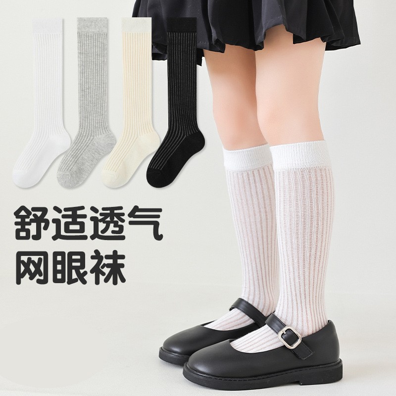 女童小腿袜夏薄款 纯棉儿童长筒袜不过膝网眼袜堆堆袜女搭配小皮鞋