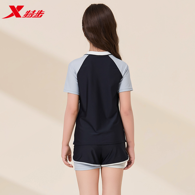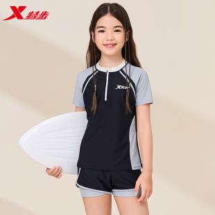 特步儿童泳衣女孩中大童初中生2025新款 备 分体防晒专业训练游泳装