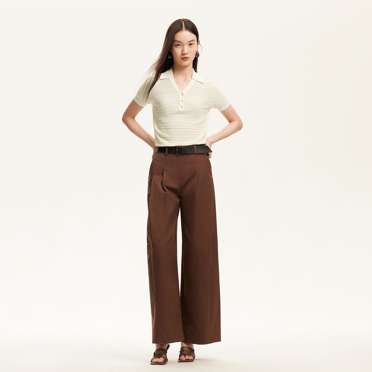 新款 女2025秋季 翻领钩织镂空微透T恤上衣 Moda奥莱针织短袖 Vero