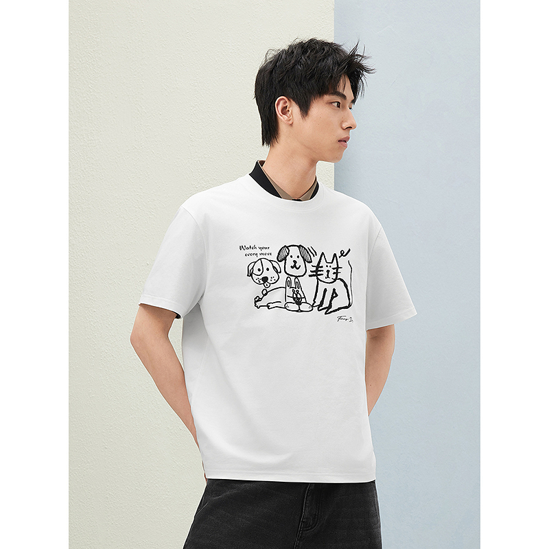 情侣凉感T恤 GXG男装 夏季 男女同款 G25D442325 线条涂鸦猫狗短袖