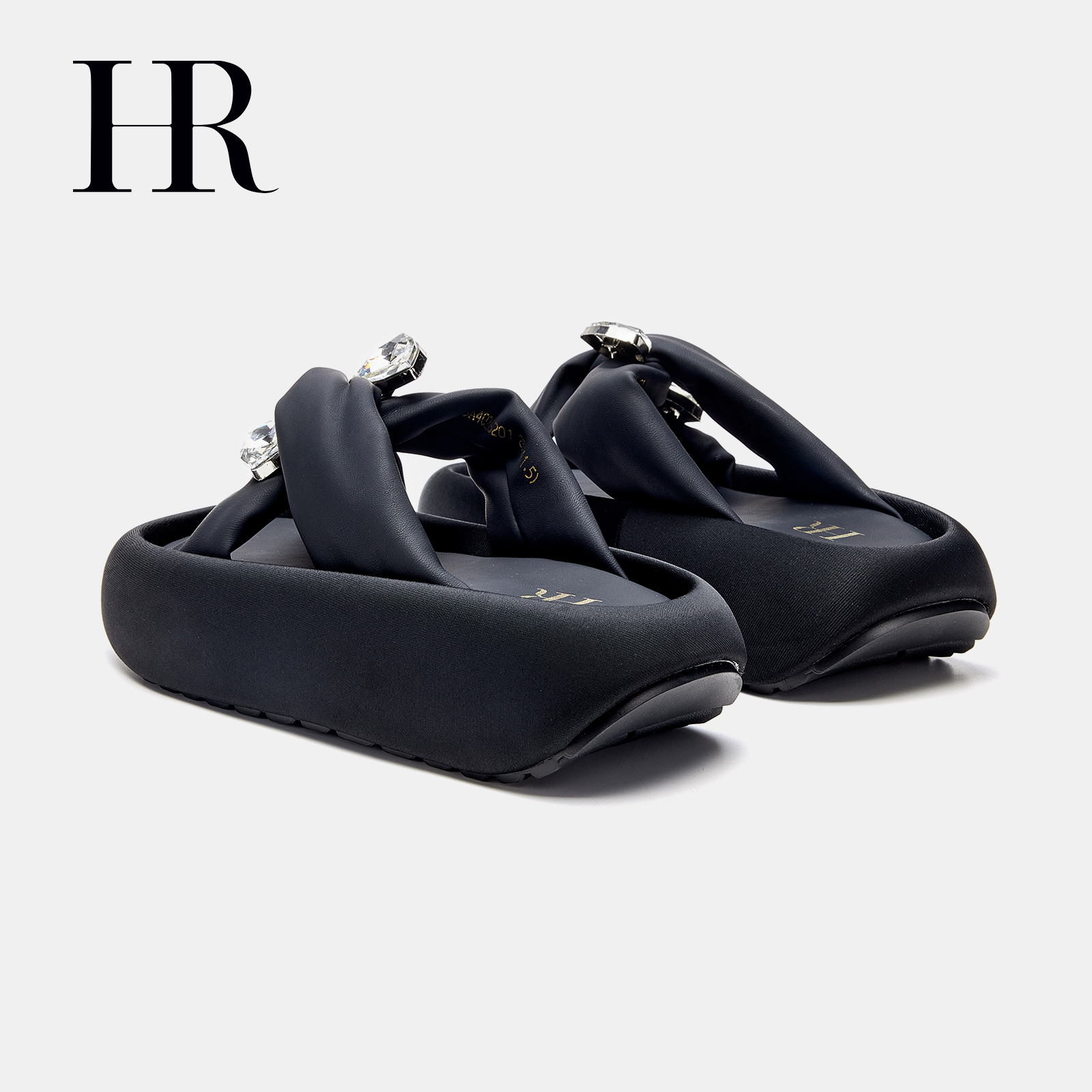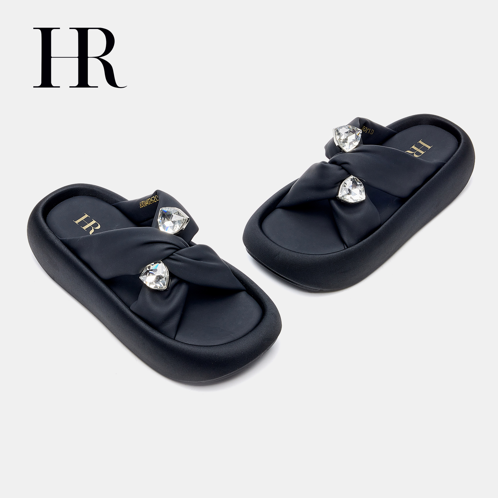 子2025夏季 沙滩鞋 新款 厚底小众水钻时尚 防滑 扭结拖鞋 HR赫莲娜女鞋