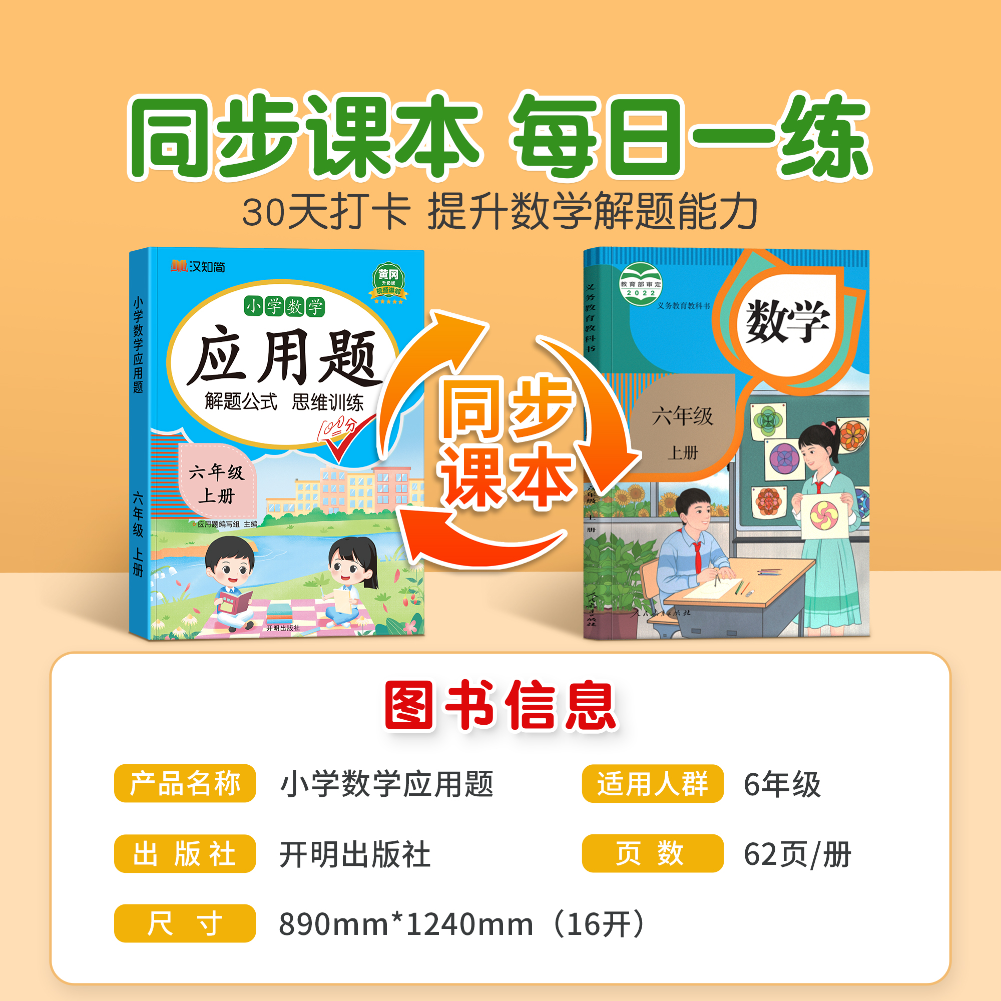 六年级数学应用题强化训练上册下册小学数学练习题思维训练人教版 每天10道解决问题逻辑口算计算题卡奥数举一反三天天练