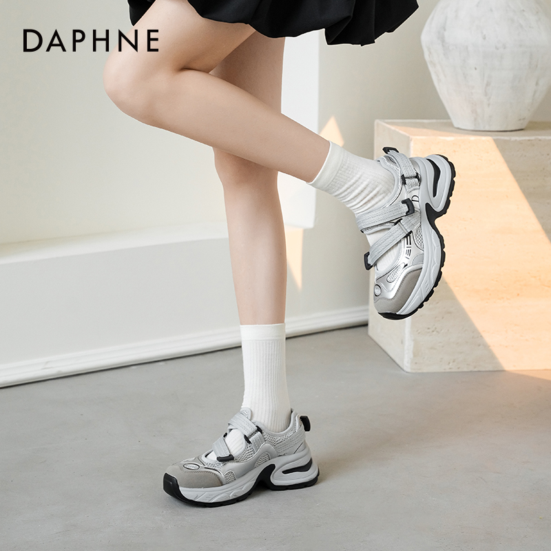 女款 厚底加绒增高休闲运动鞋 2025爆款 新款 秋冬季 达芙妮灰色老爹鞋