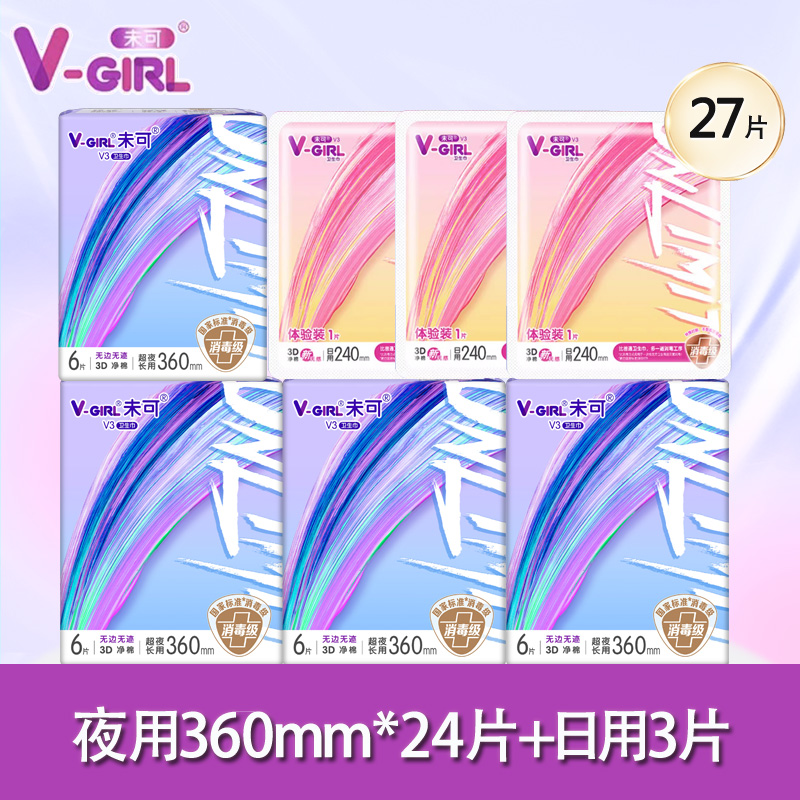 GIRL未可V3小浮芯消毒级卫生巾超长夜用360mm正品