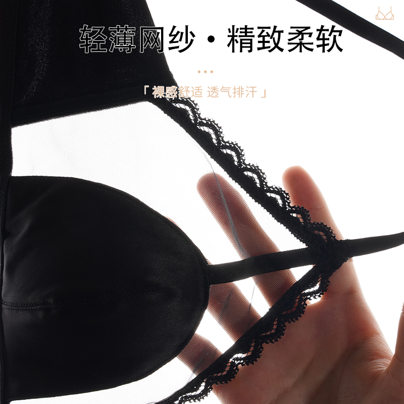 小胸舒适无钢圈性感蕾丝缎面兔耳杯文胸 薄款 法式 三角杯内衣女夏季