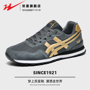 轻便软底减震休闲黑色爸爸跑鞋 秋冬跑步鞋 男鞋 乔丹皮面防水运动鞋