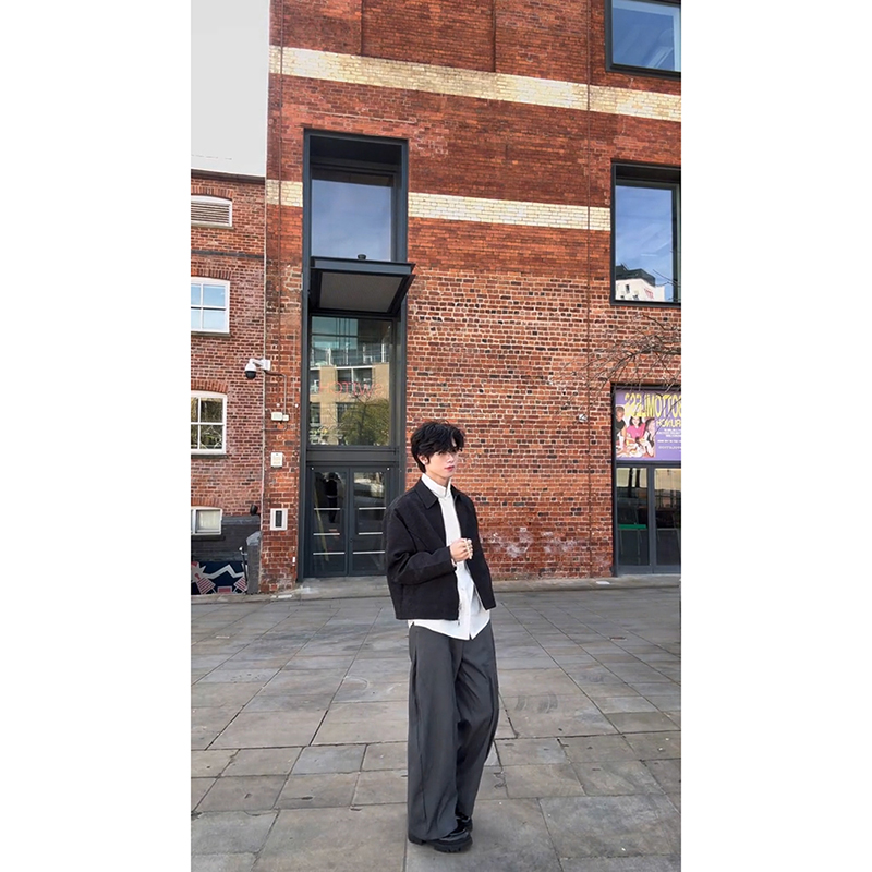 新中式 黑色纹理夹克男春秋高级感cleanfit翻领外套痞帅潮牌棒球服