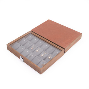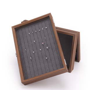 黑胡桃木纹耳环项链戒指珠宝展示箱手镯耳钉饰品收纳整理盒首饰架