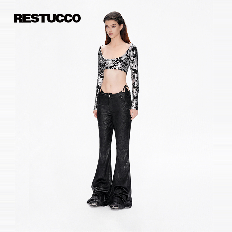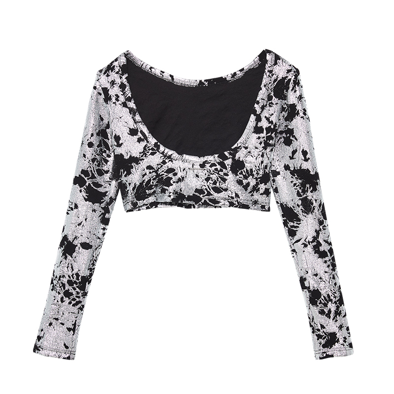 酷辣视角 短款 RESTUCCO 性感T恤女长袖 上衣 烫银刷蜡系列U领修身