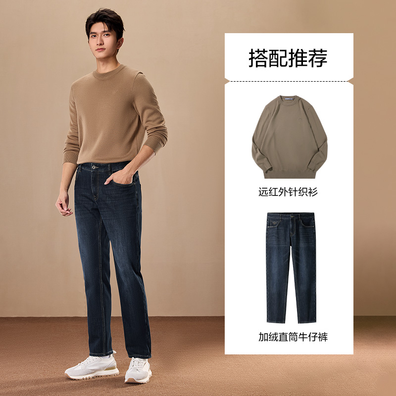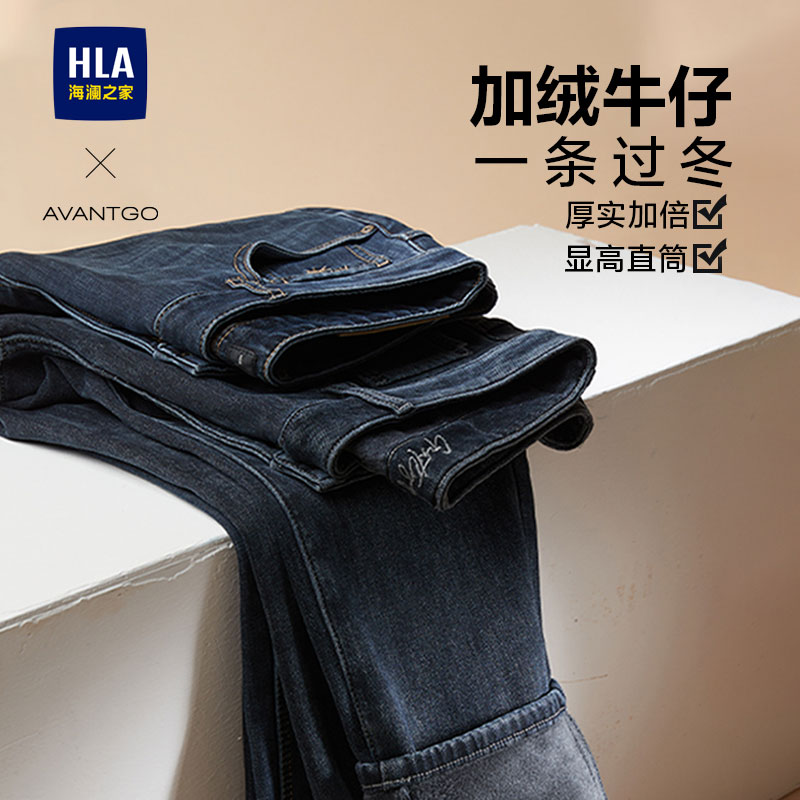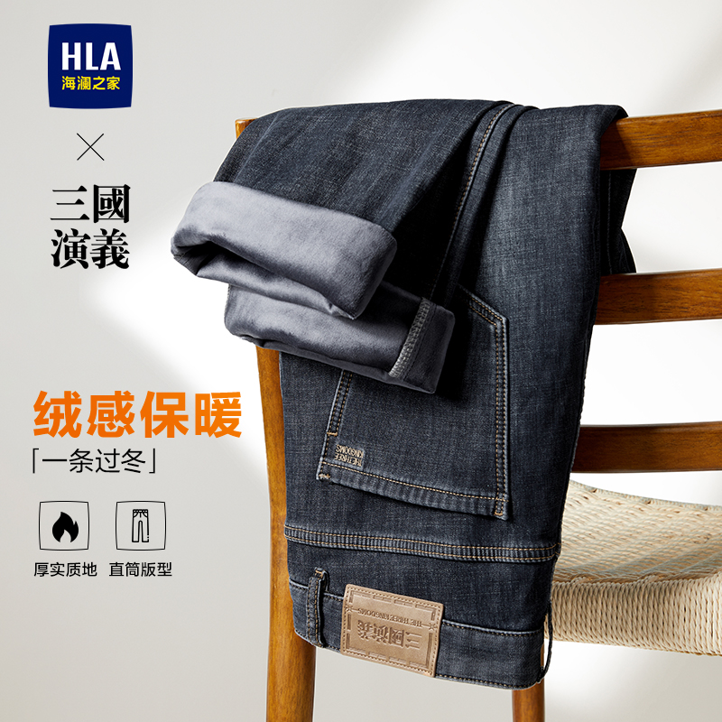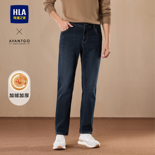 海澜之家轻商务加绒加厚直筒牛仔裤 子男士 秋冬季 保暖长裤 新款 HLA