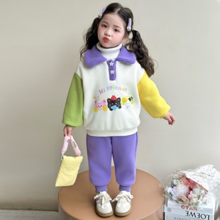 小猫加厚冬装 2025新款 女孩儿童衣服 女宝宝冬季 女童卫衣加绒套装