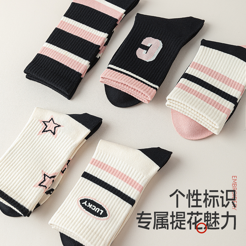 棉袜夏季 木耳边袜子女款 纯棉春秋无骨短袜防臭吸汗中筒袜配小皮鞋