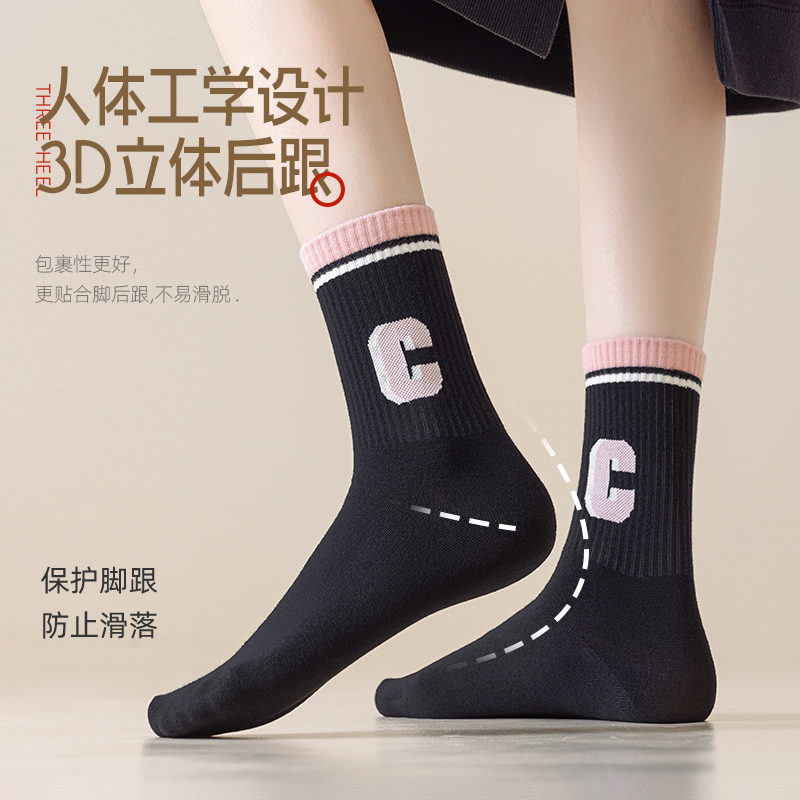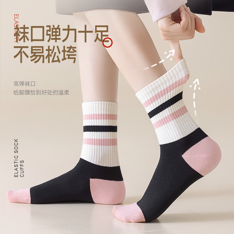 女秋冬堆堆袜纯色防臭吸汗百搭 中筒袜6双装 芭芭农场