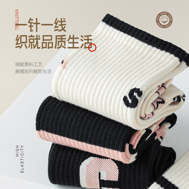 搭配小皮鞋 中筒袜秋冬季 白色防臭月子无骨 纯棉春秋季 堆堆袜子女款