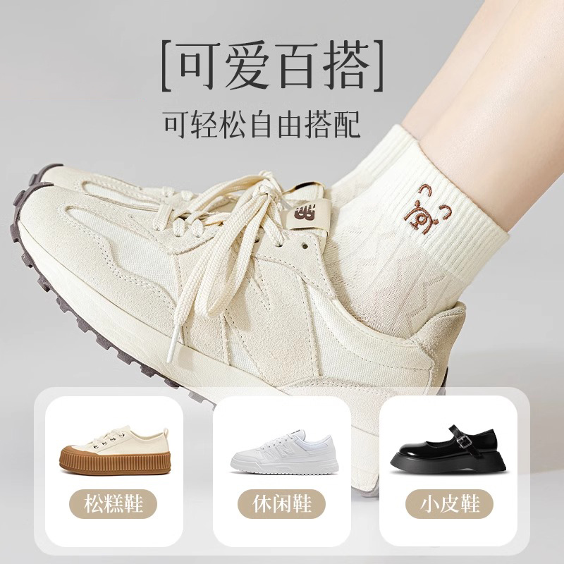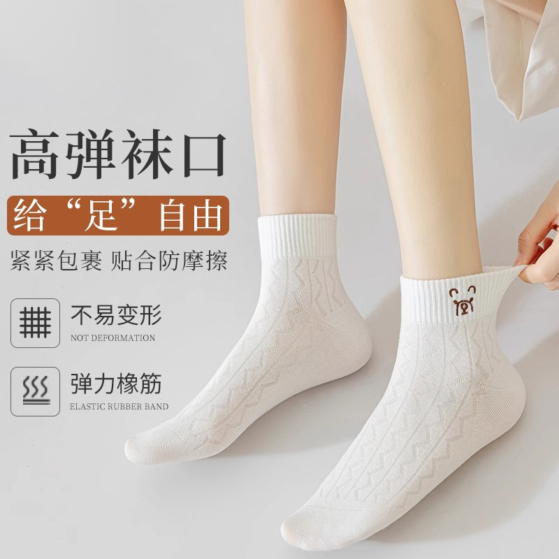 诸暨袜子女短袜夏季 白色可爱小熊中筒袜 纯棉无骨防臭运动袜春秋季