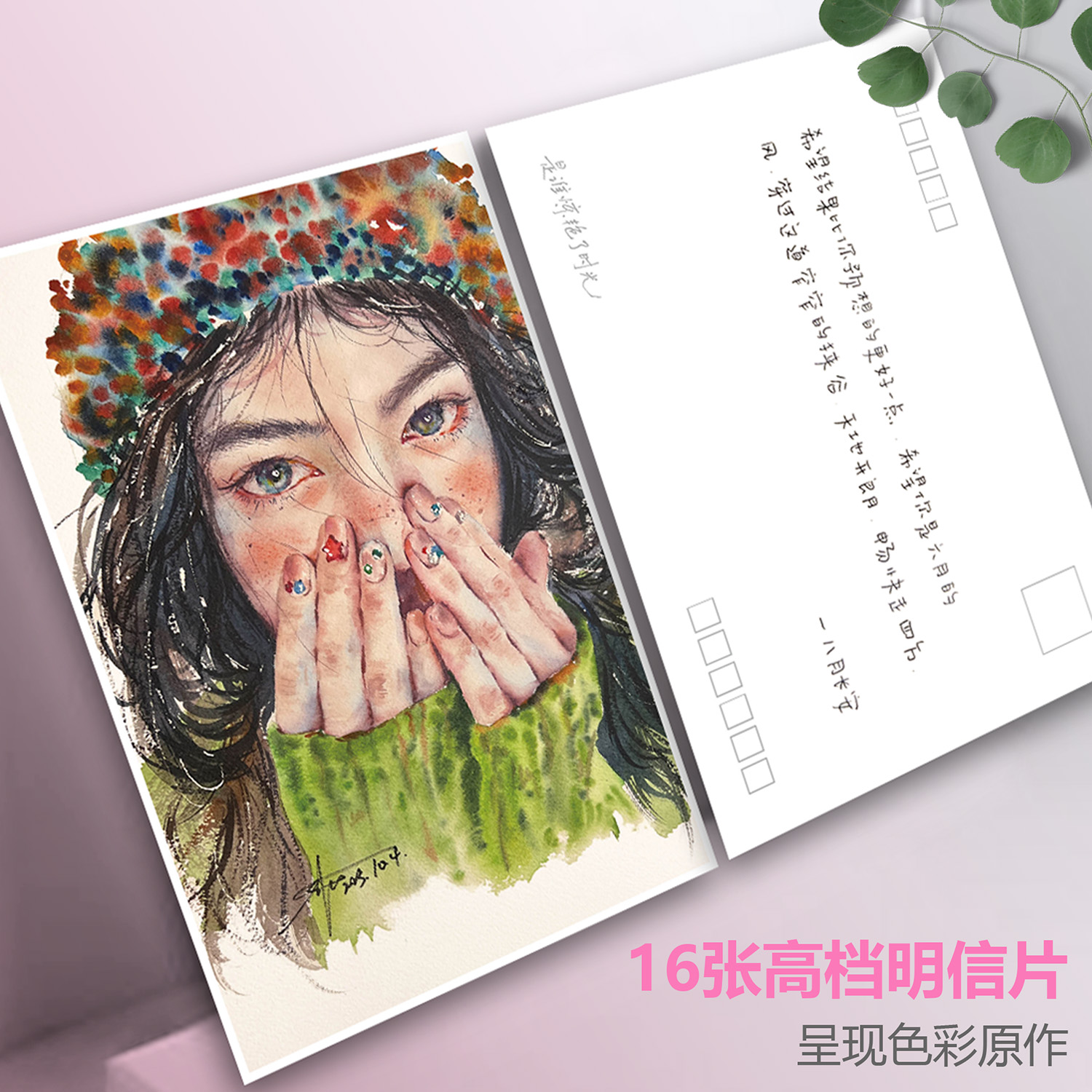 装 16张高清水彩唯美人物头像艺术写实大尺寸卡片 饰礼物收藏通用精美贺卡 明信片 是谁惊艳了时光