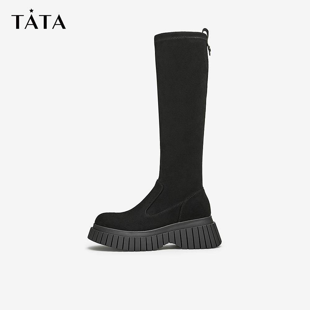 Tata他她厚底显瘦长筒靴女靴子气质瘦瘦靴冬CAC02DG4 双11预售