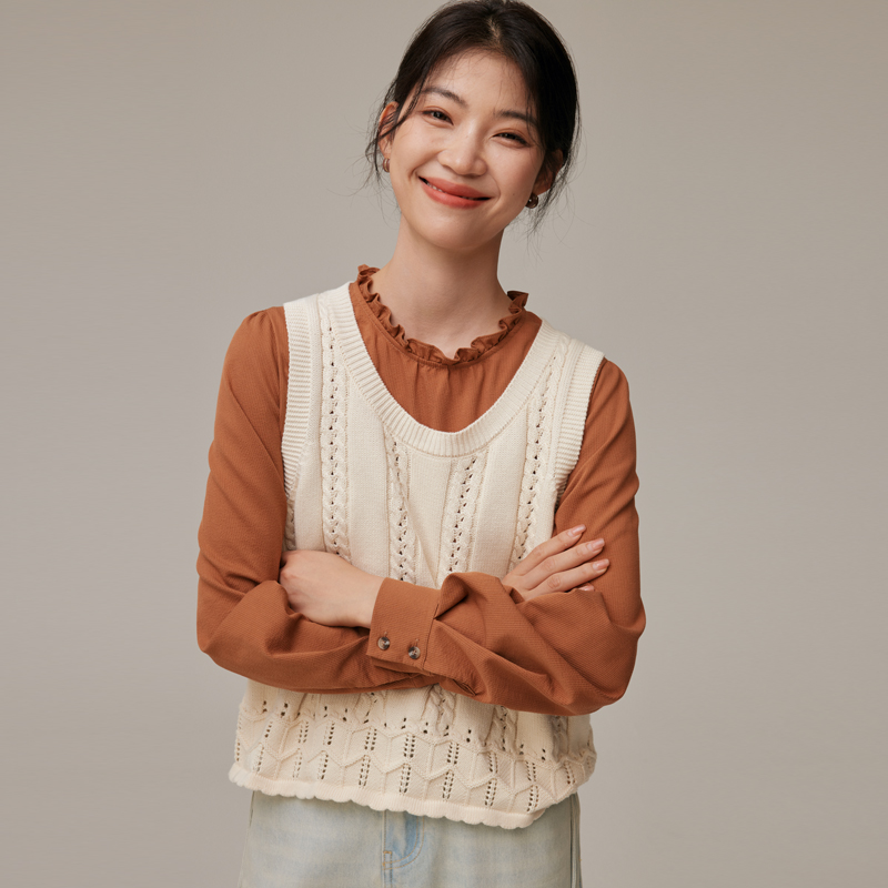bbfer本依凡秋款 背心镂空马夹STSZZ0074 针织马甲女优雅通勤无袖