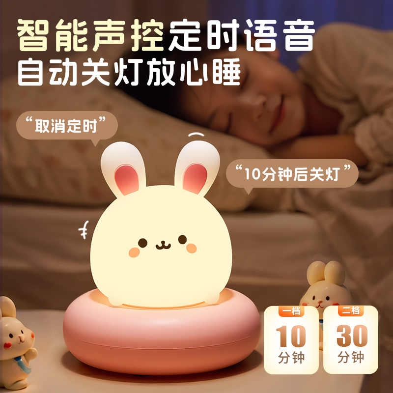 柔光卧室LED声控灯感应床头灯人工语音控制小夜灯智能USB插电台语音小夜灯