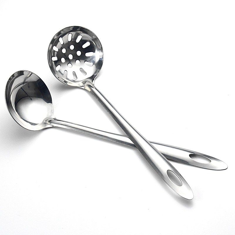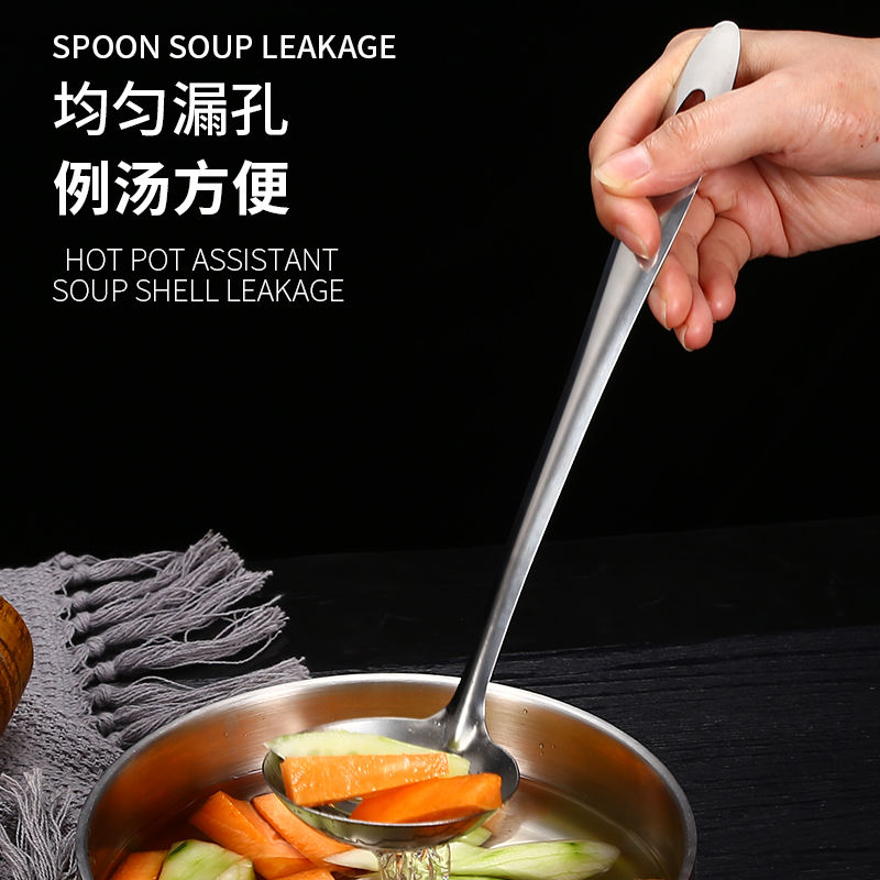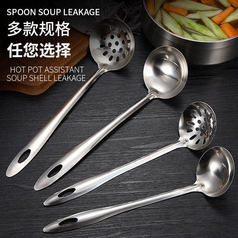 304不锈钢勺子家用长柄火锅勺盛汤勺漏勺套装 大号加深加厚410加长