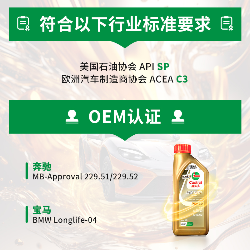 1L全合成汽车发动机油润滑油 全新Castrol嘉实多铂金极护SQ