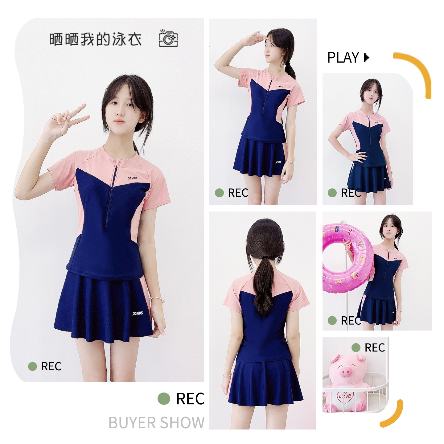 特步儿童泳衣2025年新款 女童中大童显瘦学生女孩洋气分体三件套装