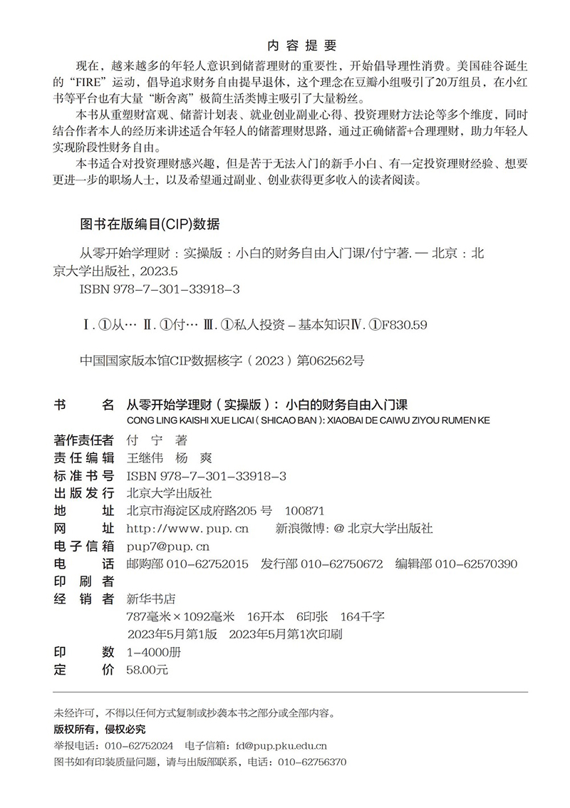实操版 小白 财务自由入门课 正版 北京大学出版 从零开始学理财 付宁 社9787301339183 2023新书