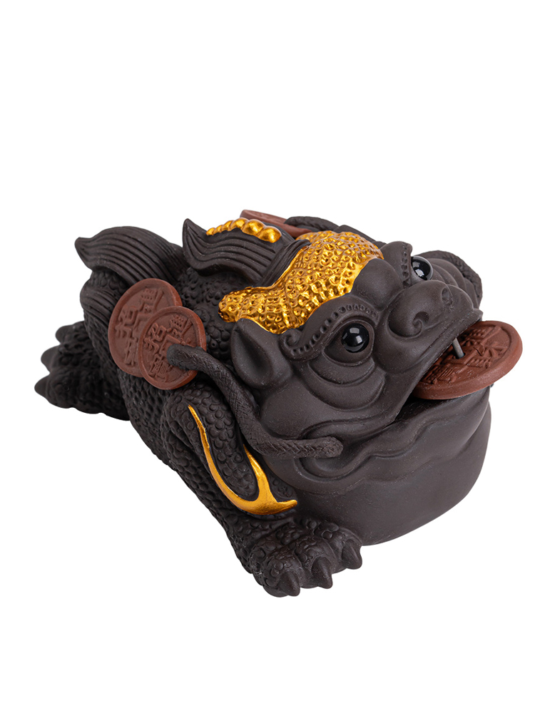 茶道高端手工紫砂金蟾茶宠摆件招财可养紫泥精品高档茶玩茶具配件