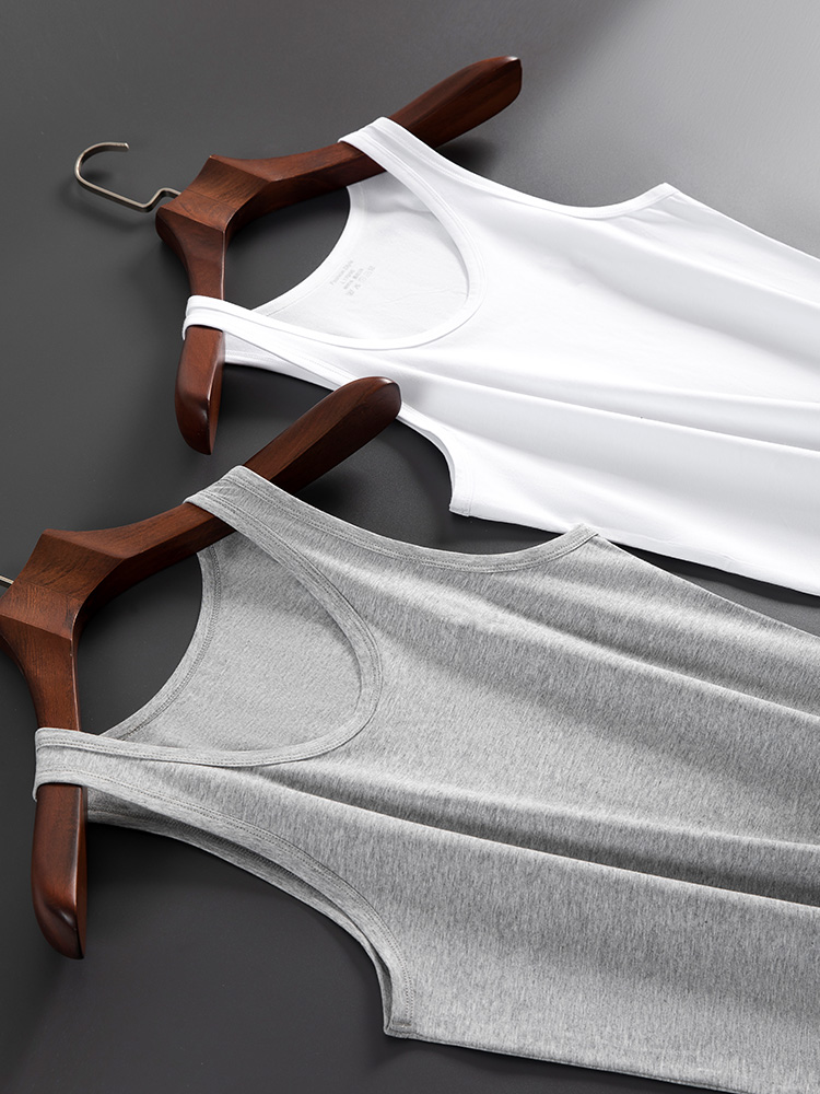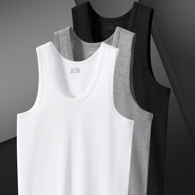 夏 100%全棉吸汗打底内穿老头汗衫 纯棉背心男运动健身跨栏男款 修身