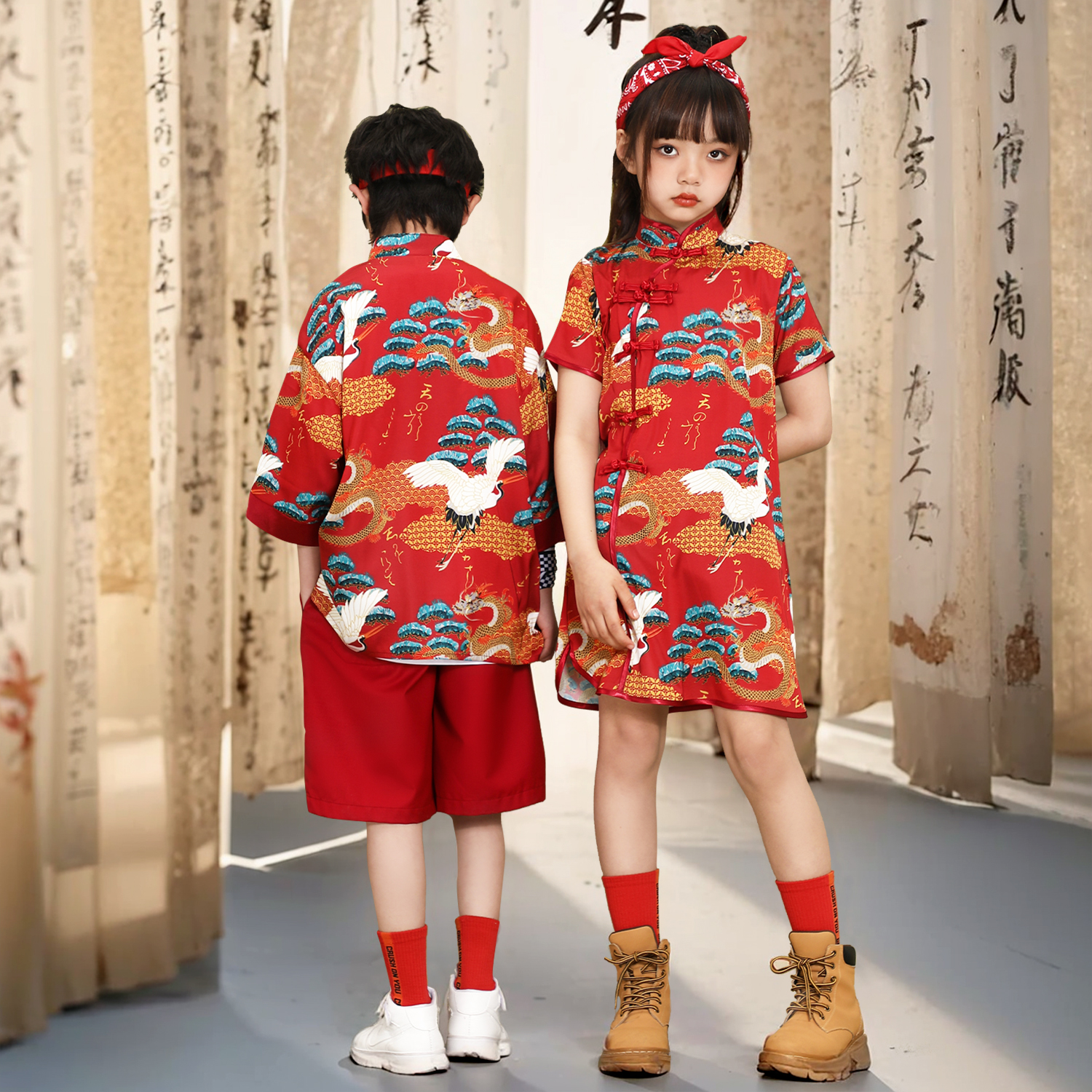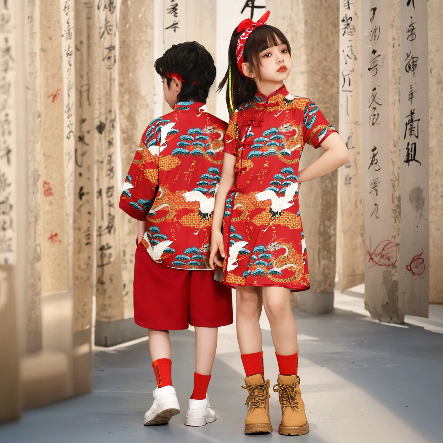 薄款 汉服夏季 男童新中式 儿童改良旗袍女童中国风演出服2025新款