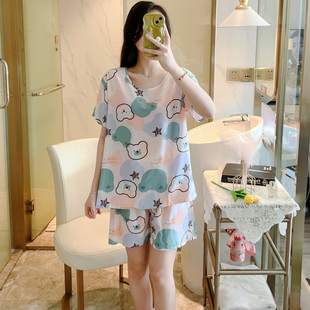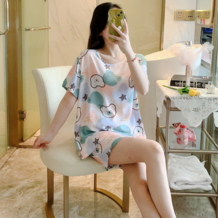 套装 短袖 人造棉学生家居服女士绵绸夏款 2025年新款 棉绸睡衣女夏季