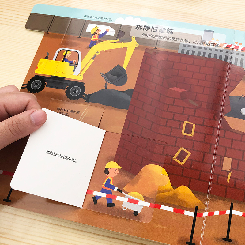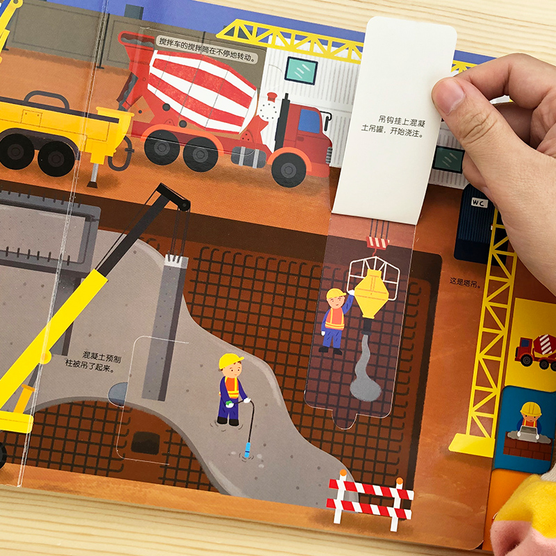 建筑工地撕不烂3d立体机关书一两岁儿童早教益智游戏书籍2 小红花忙碌小镇全景认知翻翻书 6岁宝宝启蒙认知绘本纸板书 新华文轩