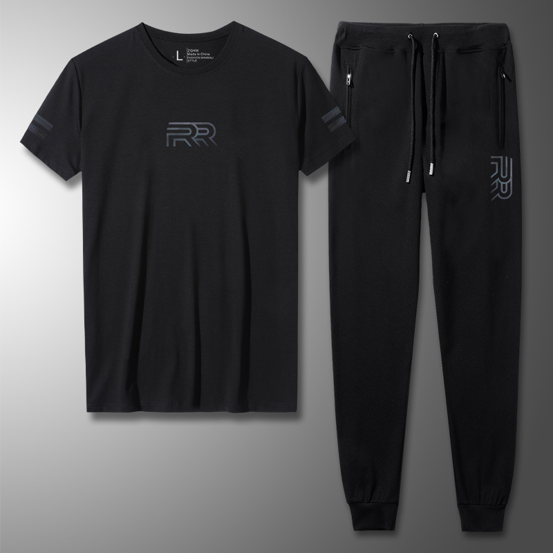 套装 ZGHW夏季 t恤长裤 简约印花短袖 中青年潮流休闲帅气上衣服 男士