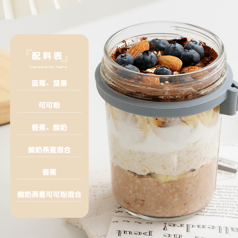 帕梅拉燕麦杯kilner刻度轻食杯便携玻璃酸奶杯隔夜早餐杯带盖勺