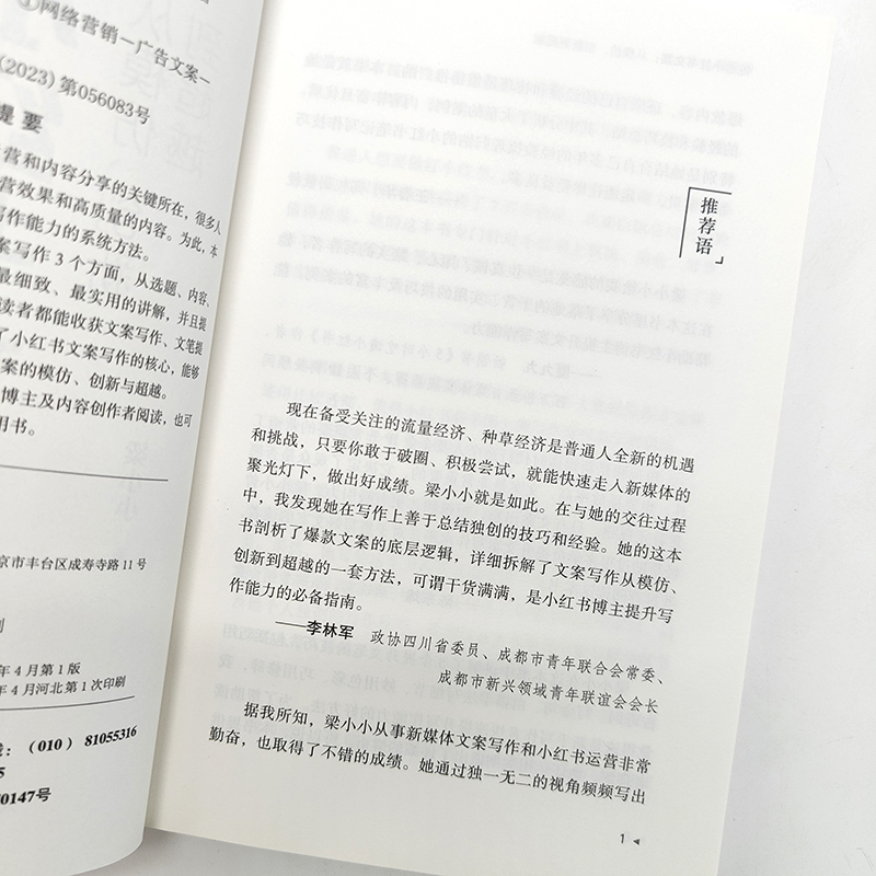 小红书运营 爆款 人民邮电出版 从模仿创新到超越 社 广告营销类书籍 梁小小 自媒体运用文案写作创作 吃透小红书文案 文案写作