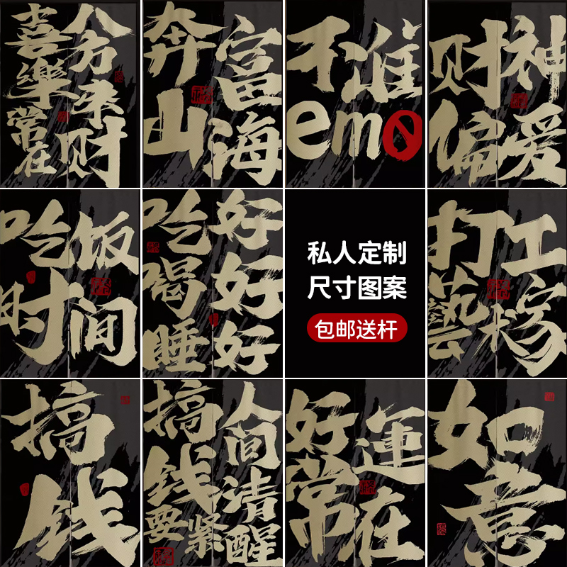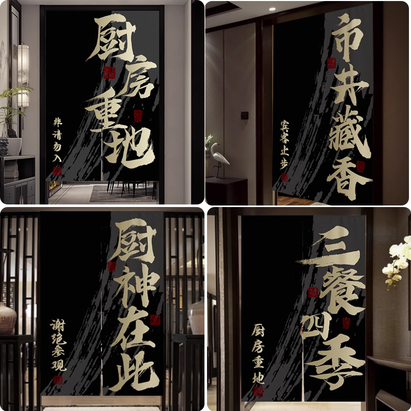 定制门帘隔断帘厨房饭店网红文字布艺分隔帘餐厅半挂帘磁吸帘子