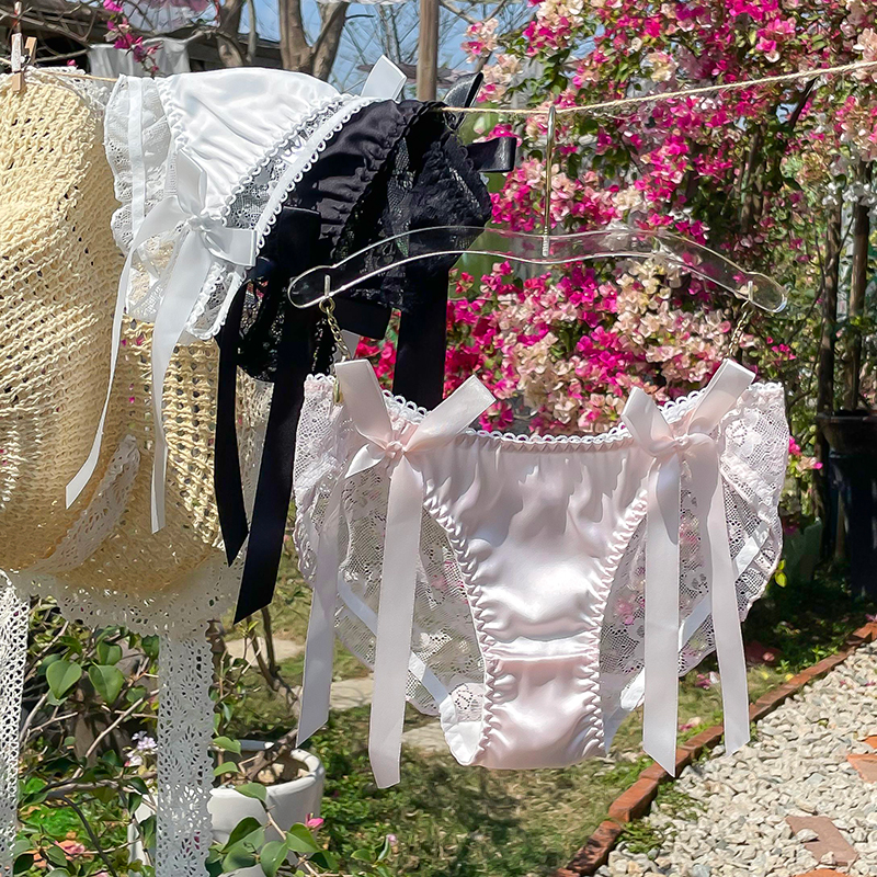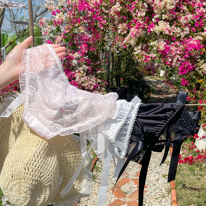 提臀诱惑 半透明蕾丝三角裤 瑶瑶闺蜜纯欲内裤 女蝴蝶结性感低腰薄款