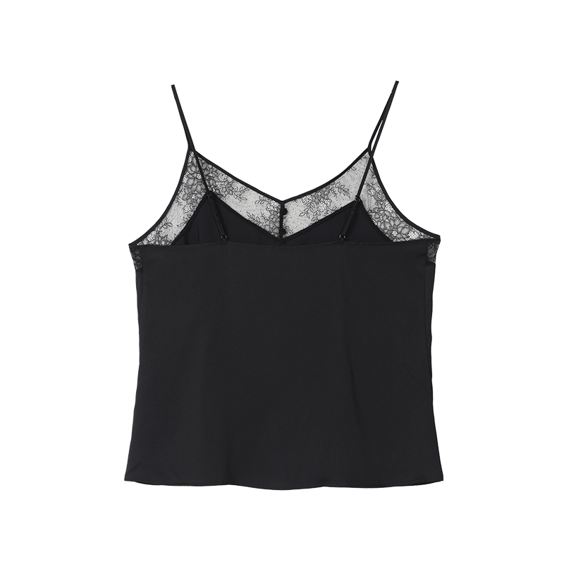 安莉芳官方奥莱安朵夏季 冰丝吊带背心 性感黑色蕾丝女士打底修身