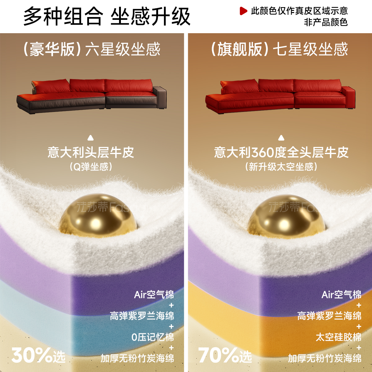 法莎蒂意式 简约进口牛皮布达佩斯网红客厅直排豆腐块异形真皮沙发