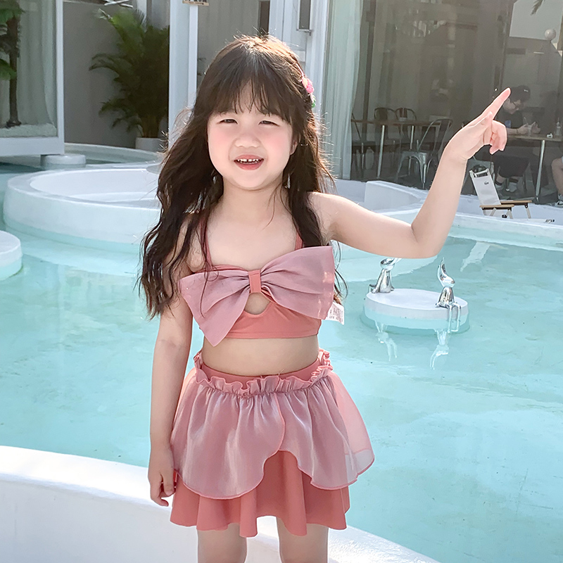 游泳衣中小童宝宝母女泳装 儿童泳衣女童亲子装 洋气蝴蝶结分体裙式
