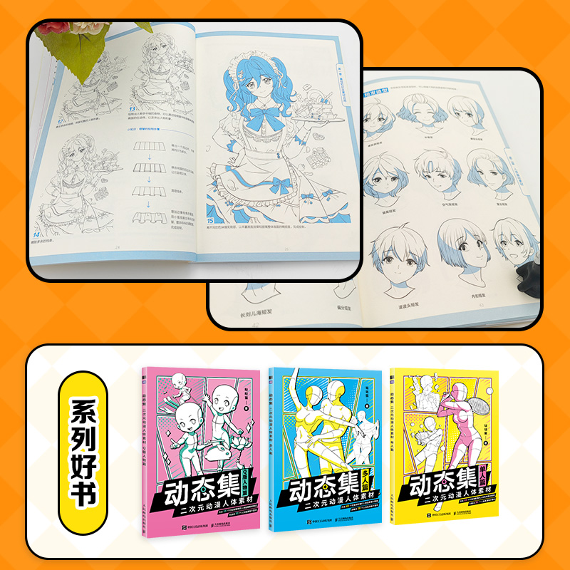 单人篇 600余人体临摹素材 人体结构基础原理解析 动态集 漫画人物绘画教程书 动漫人体素材 人体动态结构临摹画册 速写 二次元